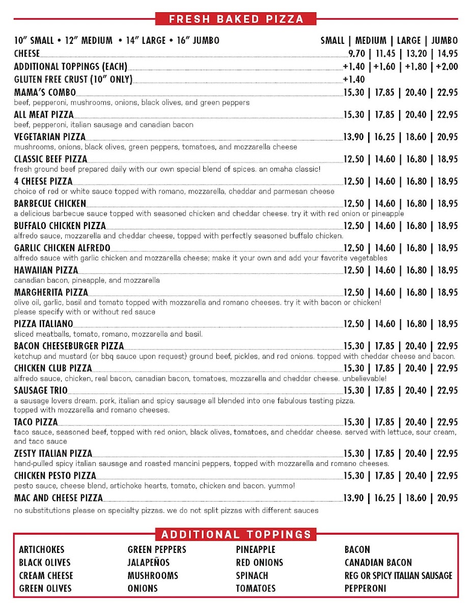 In essence, Mama's Pizza is a beloved fixture of Omaha's dining scene, not just for its mouthwatering pizza, but for the heartwarming experience it offers to each guest. Whether you're enjoying a breezy lunch with friends or savoring a cozy dinner with family, Mama’s Pizza guarantees a slice of happiness with every visit.